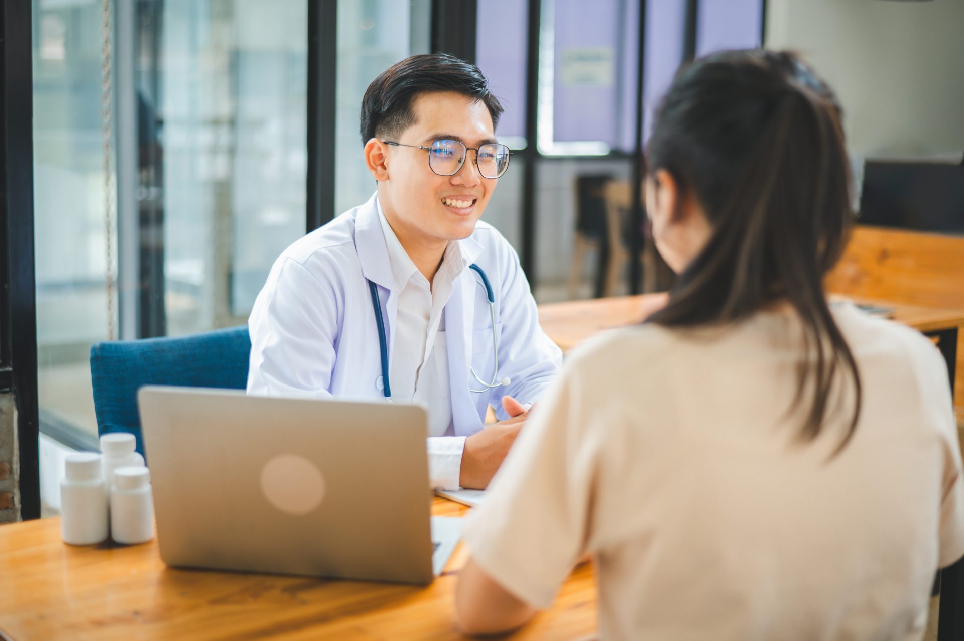 Doctors are inquiring about the patient’s symptoms, notifying the results of the physical examination, and recommending treatment and health care.